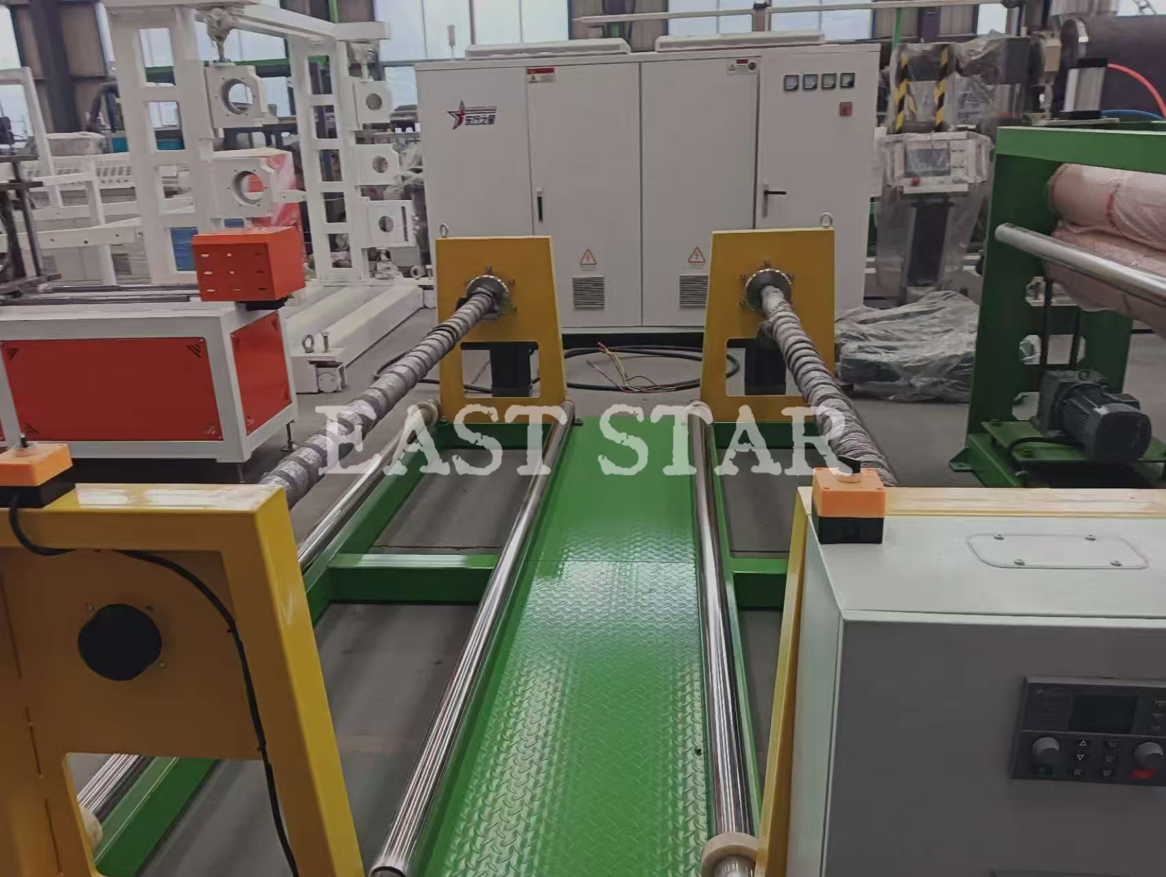 · Dreiwalzen-Kalander: Kühlt und poliert die geschmolzene extrudierte Folie und kontrolliert so präzise die Dicke und das Finish des Endprodukts.