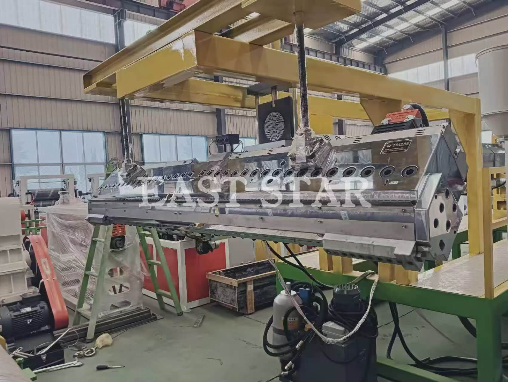 · Präzisions-Flachdüse: Speziell für eine Breite von 2,4 Metern konzipiert, ist der Fließweg präzise berechnet, um eine gleichmäßige Blechdicke zu gewährleisten.