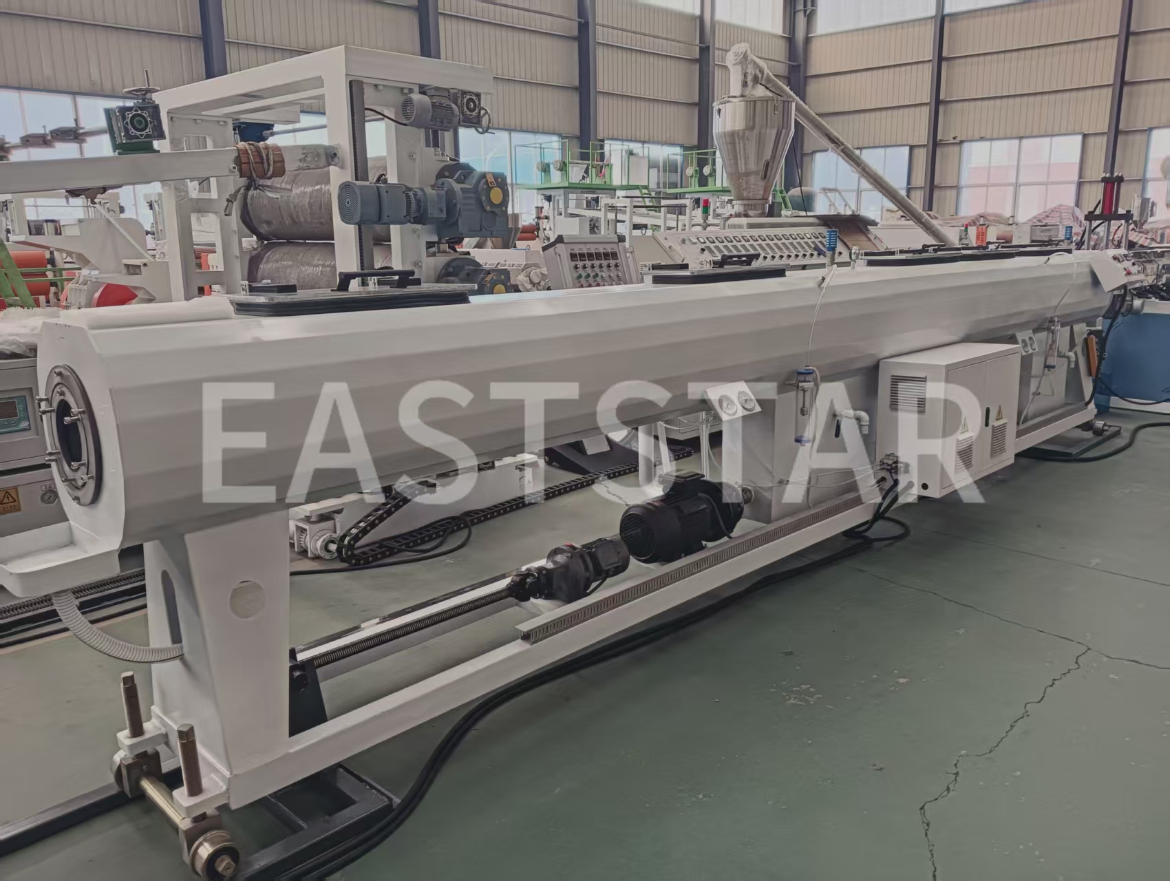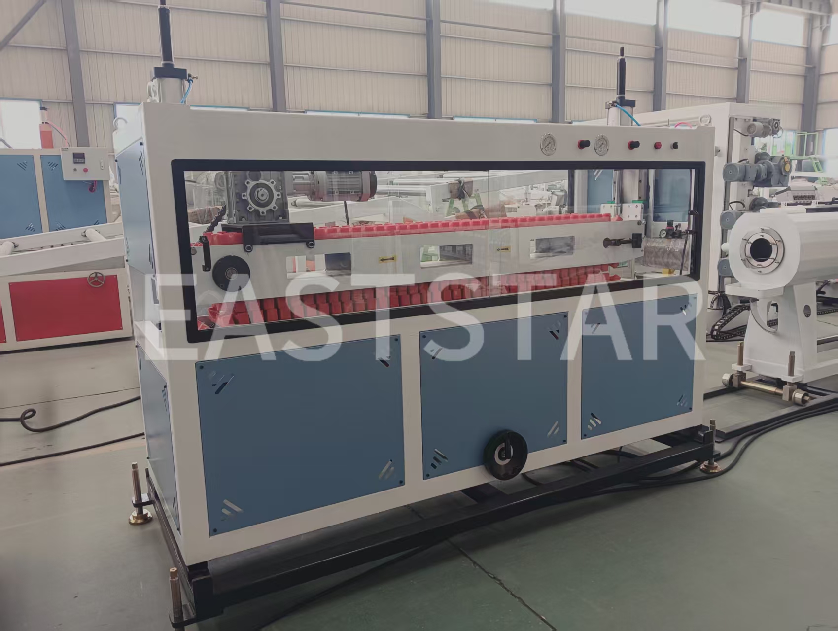 Qingdao, China – Kürzlich hat QINGDAO EASTSTAR die Containerisierung und Verschiffung einer Hochleistungs-PE-Rohrproduktionslinie für die Entwicklung des Wasserversorgungs- und Entwässerungssystems Palästinas erfolgreich abgeschlossen. Die Produktionsausrüstung für PE-Rohre, bestehend aus Extruder, Düse, Vakuumkalibriertank, Kühlwassertank, Abzugseinheit und Schneidgerät, stellt die Kompetenz des Unternehmens im Bereich der Kunststoffextrusionsausrüstung unter Beweis.