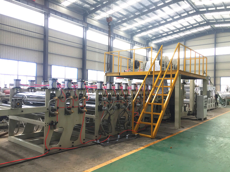 Qingdao EASTSTAR ist fertigProduktionslinie für PE-Aluminium-Kunststoff-Plattenbesteht aus einem SJ150×33-Einschneckenextruder, einer Verbunddüse, einem Dreiwalzenkalander, einem doppelseitigen Aluminium-Coil-Abwickler, einem Zweiwalzen-Thermalaminator, einem Achtwalzen-Thermalaminator, einem Sechswalzen-Kühlführungswalzenständer, einem Laminator, einem Vierwalzen-Abzug und einem Schneider. Ein SPS-System ermöglicht die intelligente Steuerung der gesamten Linie.