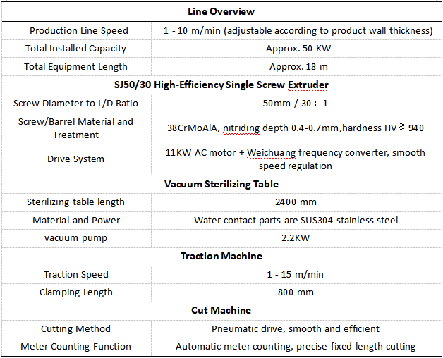 Das Setup dafürProduktionslinie für LampenröhrenabdeckungenIm Mittelpunkt stehen einige wichtige Ausstattungsdetails. Das Herzstück ist der Einschneckenextruder SJ50/30. Es verfügt über eine 50-mm-Schraube mit einem Verhältnis von Länge zu Durchmesser von 30 zu 1. Sowohl die Schnecke als auch der Zylinder bestehen aus nitriertem 38CrMoAlA-Stahl, der dazu beiträgt, Materialien vollständig zu schmelzen, alles gleichmäßig zu halten und selbst bei harten Materialien wie PC, PS und ABS eine konstante Leistung zu liefern.Produktionslinie für Lampenröhrenabdeckungenkombiniert einen 11-kW-Wechselstrommotor mit einem Weichuang-Frequenzumrichter, sodass die Geschwindigkeit präzise kontrolliert bleibt. Darüber hinaus kümmert sich eine automatische Vakuumzuführung und ein Luftentfeuchter um die Feuchtigkeit in Rohmaterialien wie PC und ABS und stellt sicher, dass die Schmelze für den Extrusionsprozess von hoher Qualität bleibt. Die gesamte Linie wird zentral über Siemens-Niederspannungsteile und Omron-Temperaturregler gesteuert, wodurch alles zuverlässig läuft.
