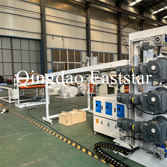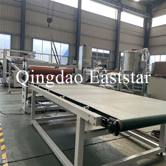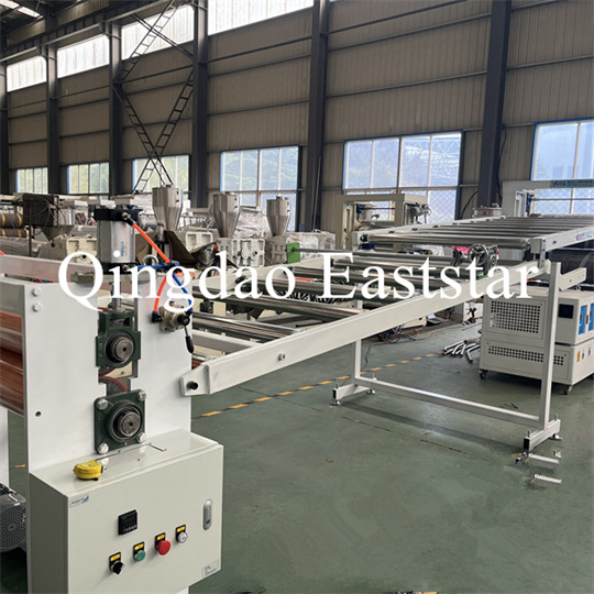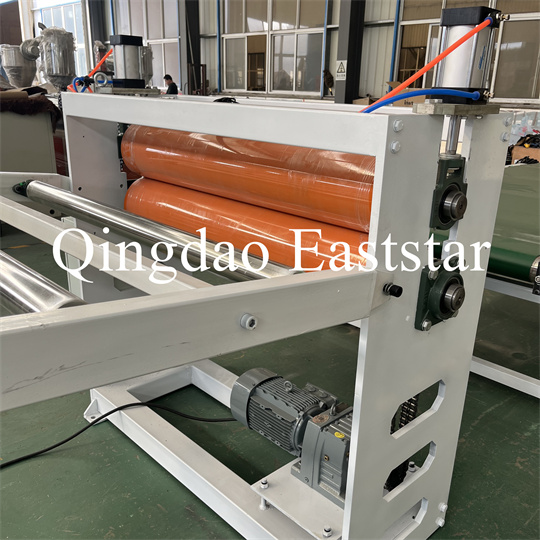 Extruderausrüstung für Weich-PVC-Antirutschplatten: Die Ausrüstung besteht hauptsächlich aus einem Einschneckenextruder, einem Dreiwalzenkalander und einer 6-Meter-Kühlung
