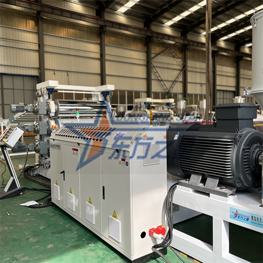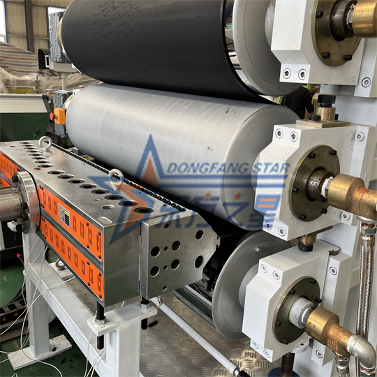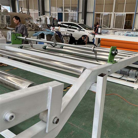 Ausrüstung für antistatische PVC-Platten: Die Ausrüstung besteht hauptsächlich aus einem 120-Einschneckenextruder, einem Dreiwalzenkalander, einer Kühlhalterung, einer Gummiwalzen-Traktionsmaschine, einer Schermaschine usw