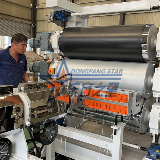 PVC-Antistatikfolien-Extruderausrüstung: Die Ausrüstung besteht hauptsächlich aus einem 120-Einschneckenextruder, einem Dreiwalzenkalander, einer Kühlhalterung, einer Gummiwalzen-Traktionsmaschine, einer Schermaschine und einer Förderbandvorrichtung. Die Standardbreite des PVC-Schildkröten-Rückwand-Ausrüstungsprodukts beträgt 1000 mm. Die Dicke beträgt 6 mm. Geräte für antistatische PVC-Extruderplatten können verschiedene Texturen erzeugen, z. B. Schildkrötenmuster, Orangenschalenmuster und Schachbrettmuster. PVC-Schildkrötenbrettausrüstung kann nach Kundenwunsch verarbeitet und angepasst werden.