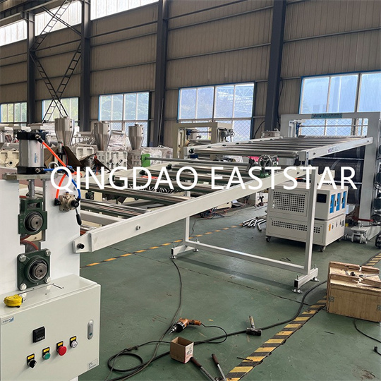 Extruderausrüstung für PVC-Beleuchtungsplatten: Die Ausrüstung besteht hauptsächlich aus einem Doppelschneckenextruder, einer Plattenform, einem Dreiwalzenkalander, einer Kühlhalterung,