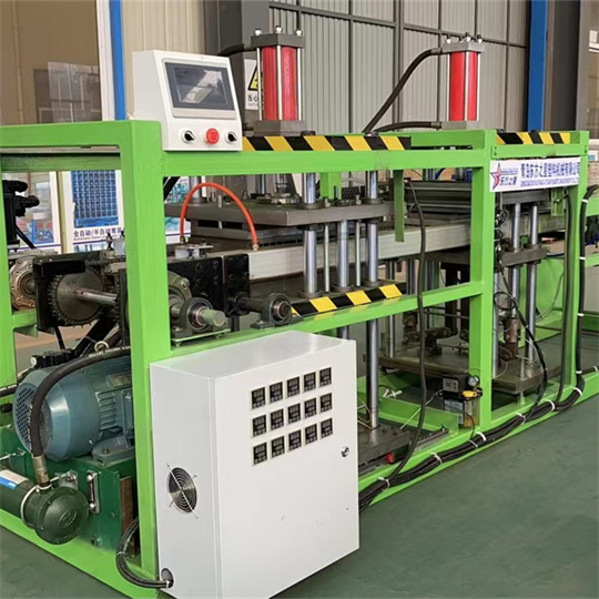 Technische Parameter der Saatschalen-Vakuumformmaschine Spezifikation: Breite des verwendeten Blechs: 300–320 mm, Dicke: 0,8–2 mm. Formungsfläche (maximal): 400 x 600 mm, Arbeitseffizienz 15–20 Mal pro Minute. Verwendete Leistung: Dreiphasen-Vierleiter 380 Volt, maximale Leistung 25 kW Hydraulikdruck: 100T Außengröße (mm Länge, Breite und Höhe) 3600 mm * 980 mm * 1500 mm