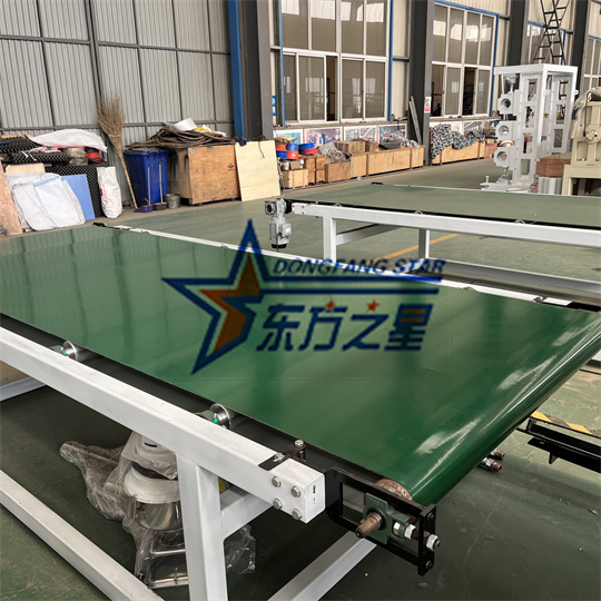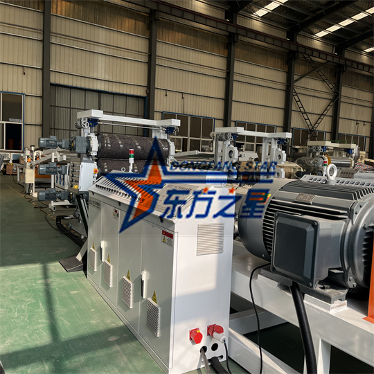 Weich-PVC-Blatt-Extruder-Maschine. Die Schildkrötenmustermaschine wird auch als PVC-Viehbrettausrüstung bezeichnet. Es wird hauptsächlich zur Bodenverlegung von Schweine-, Rinder- und Schafställen verwendet. Es spielt eine Rolle bei der Wärmeerhaltung und ist vorteilhaft für die Tierproduktion. Die Ausrüstung für PVC-Schildkrötenplatten besteht aus: Extruder, Plattenform, Dreiwalzenkalander, Kühlhalterung, Zugmaschine, Schneidemaschine, Förderhalterung, Stundenleistung 350–400 kg/h, Spezifikationen für PVC-Schildkrötenplatten: Breite 1000 mm, Dicke 6 mm. Die Breite und Dicke des Produkts sind einstellbar und die Ausrüstung kann nach Kundenwunsch bestellt werden. Mit der PVC-Schildpatt-Ausrüstung können durch Austausch der Mittelwalze auch Produkte mit Orangenschale und Rautenmuster hergestellt werden.