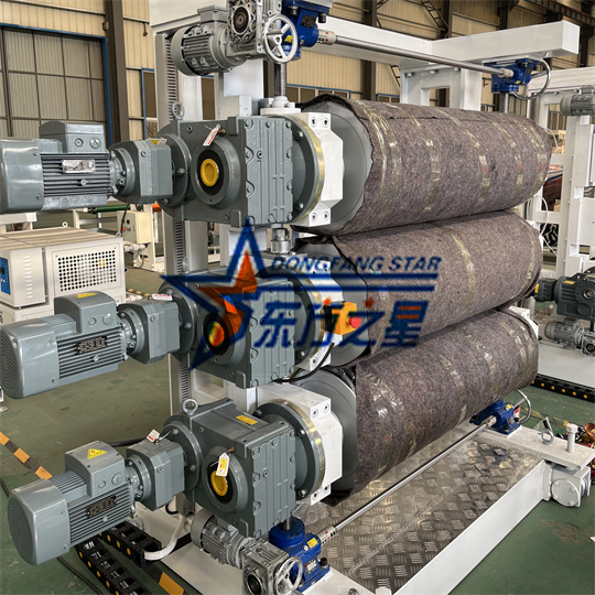Der wichtigste Teil der Schildkrötenmustermaschine für Weich-PVC-Plattenextruder ist die Dreiwalzenformmaschine, die über zwei glatte Walzen und eine Schildpattwalze in der Mitte verfügt. Die Verarbeitungsverfahren der Schildpattwalze umfassen: Grobdrehen, dynamisches Auswuchten, Feindrehen, Schleifen, Galvanisieren, Gravieren, Mattieren und feines Spiegelschleifen. Die Zeit zum Gravieren der Walze ist relativ lang, daher ist der Lieferzyklus der gesamten Ausrüstung relativ lang. Hersteller, die Schildpattausrüstung verarbeiten und anpassen müssen, müssen Bestellungen im Voraus aufgeben.